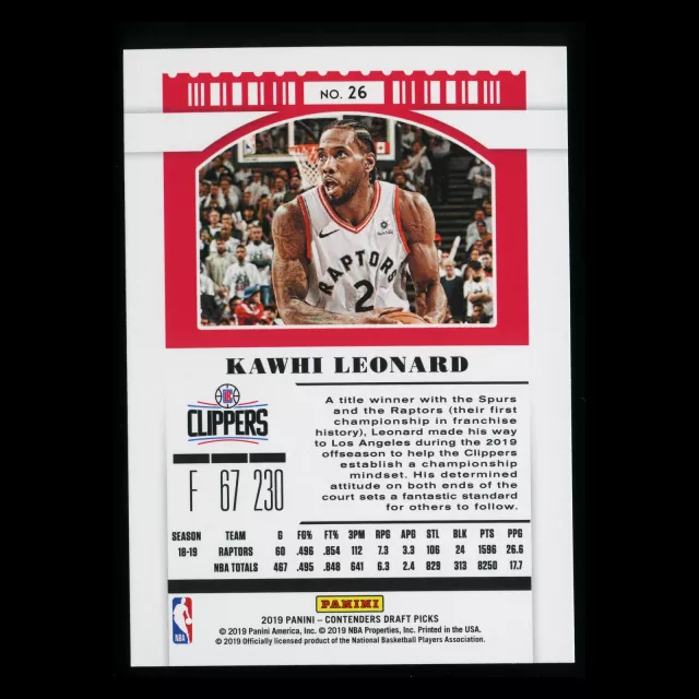 Kawhi Leonard 2019 Contenders Draft Picks Draft Ticket Blue Foil Clippers