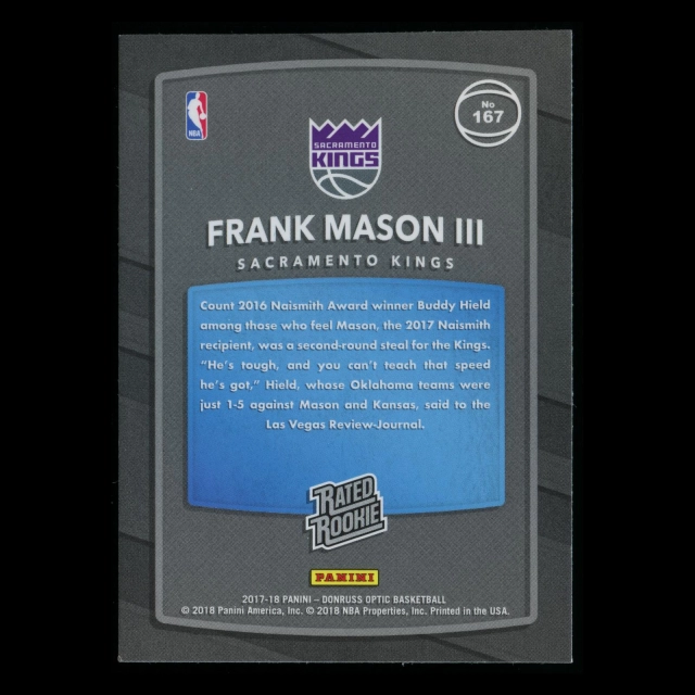 Frank Mason III RR 2017-18 Optic Rated Rookie Red Yellow Kings