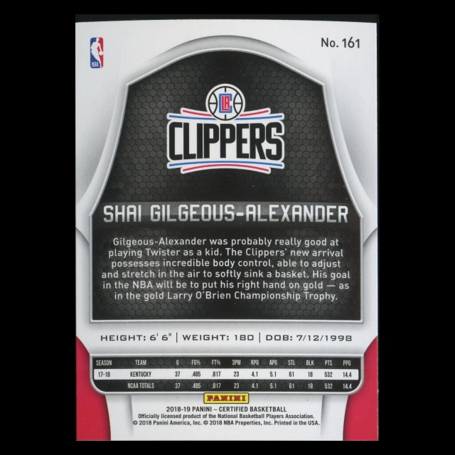 Shai Gilgeous-Alexander RC 2018-19 Certified Rookie Clippers
