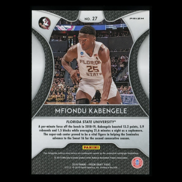 Mfiondu Kabengele RC 2019-20 Prizm Draft Picks Blue Rookie Seminoles | Vipers
