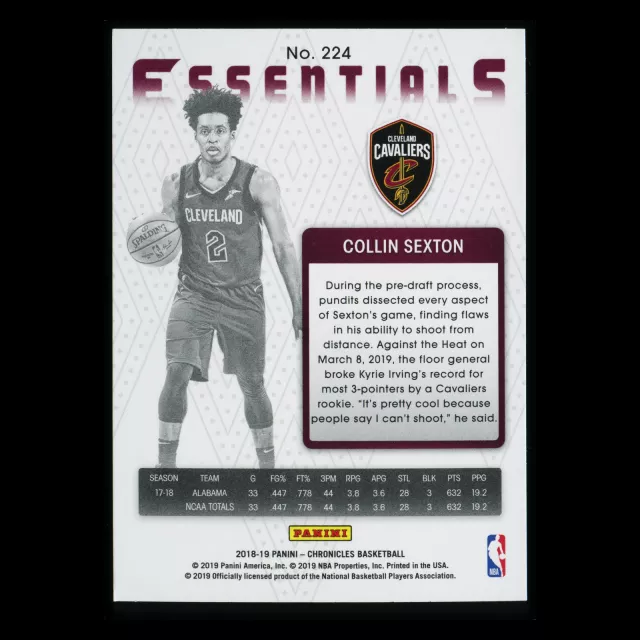 Collin Sexton RC 2018-19 Chronicles Essentials Pink Rookie Cavaliers