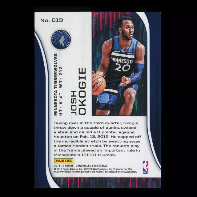 Josh Okogie RC 2018-19 Chronicles Rookie & Stars Timberwolves