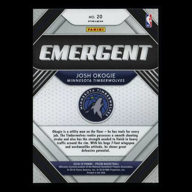 Josh Okogie RC 2018-19 Prizm Emergent Silver Timberwolves