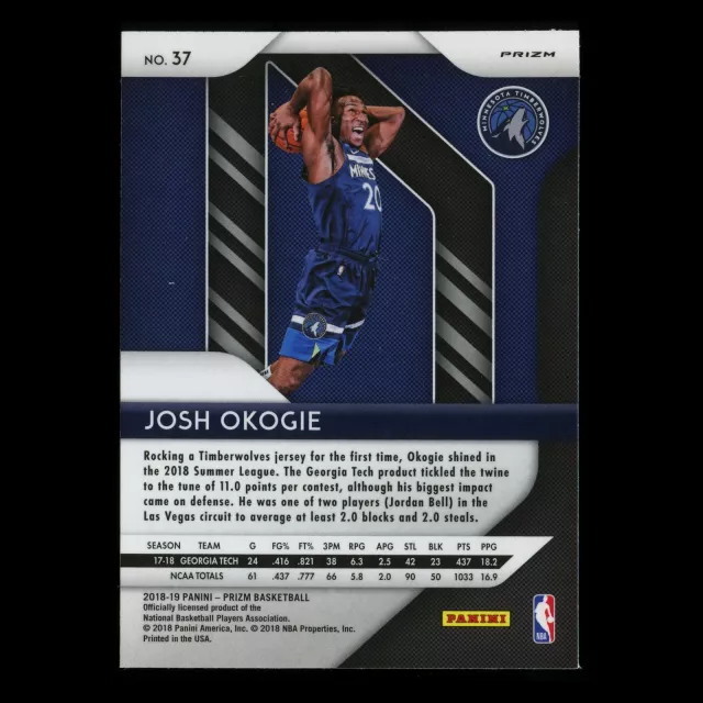 Josh Okogie RC 2018-19 Prizm Pink Cracked Ice Rookie Timberwolves