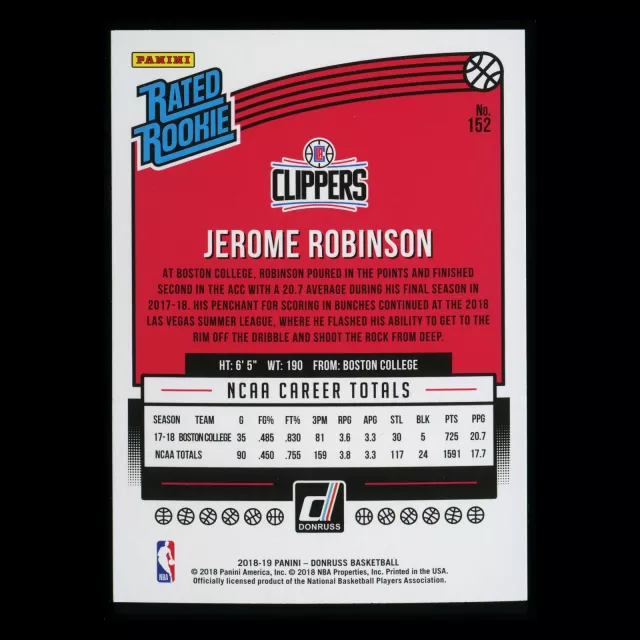 Jerome Robinson RR 2018-19 Donruss Rated Rookie Clippers