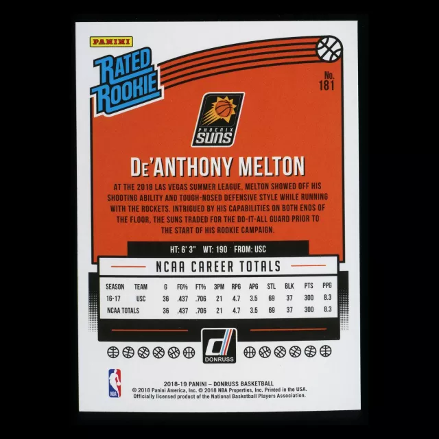 De'Anthony Melton RR 2018-19 Donruss Rated Rookie Suns