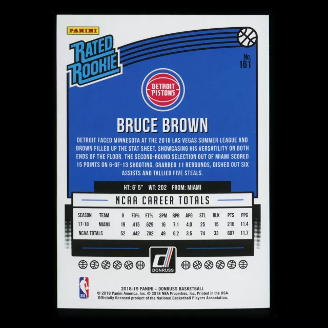 Bruce Brown RR 2018-19 Donruss Rated Rookie Pistons
