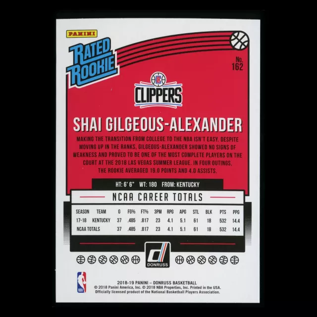 Shai Gilgeous-Alexander RR 2018-19 Donruss Rated Rookie Clippers