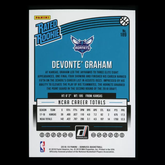 Devonte Graham RR 2018-19 Donruss Rated Rookie Hornets