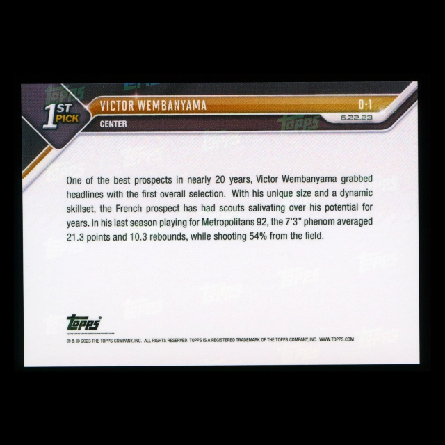 Victor Wembanyama RC 2023 Topps Now 1st Pick Rookie Spurs