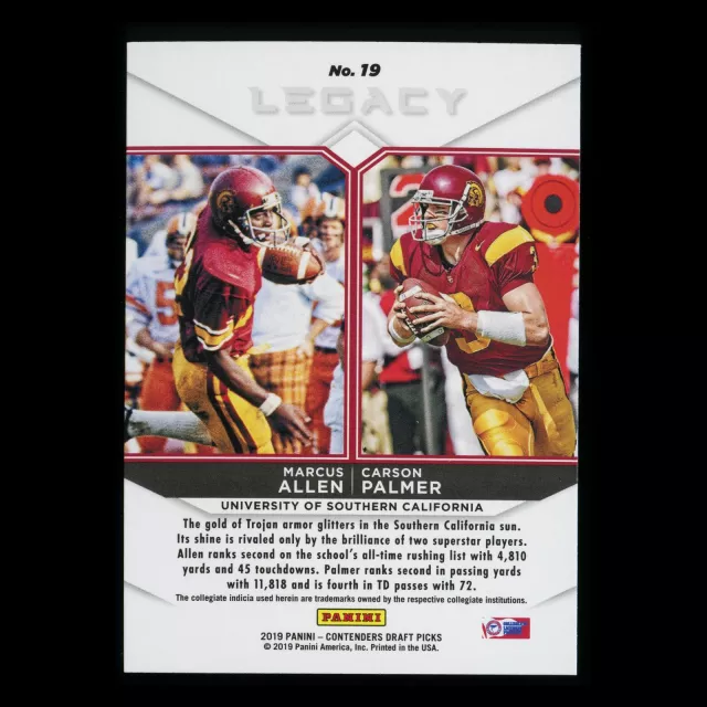 Marcus Allen | Carson Palmer 2019 Contenders Draft Picks Legacy Trojans