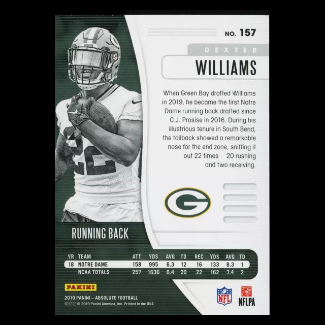 Dexter Williams RC 2019 Absolute Rookie Packers