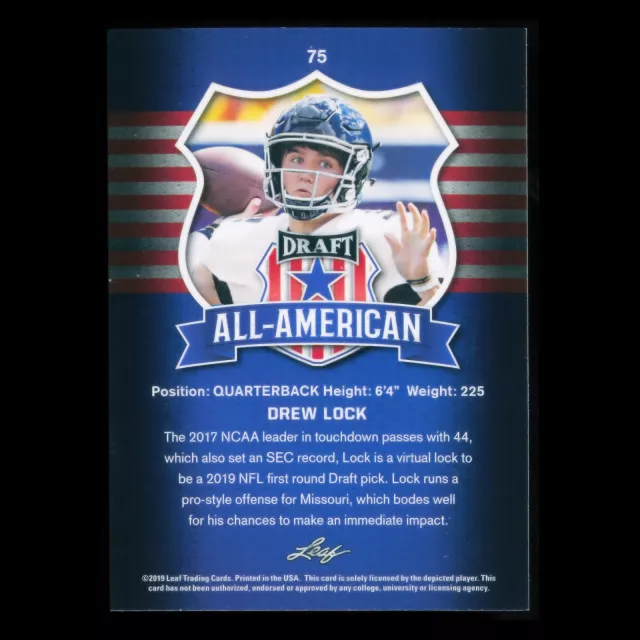 Drew Lock 2019 Leaf Draft All-American Gold Tigers/Broncos