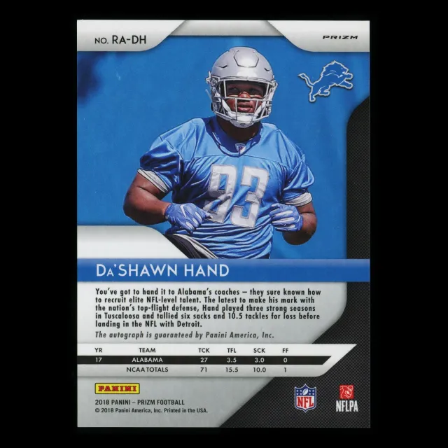 Da'Shawn Hand 2018 Prizm Silver Auto Lions