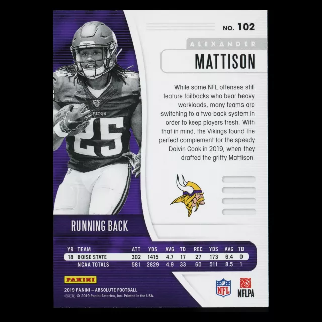 Alexander Mattison RC 2019 Absolute Rookie Vikings