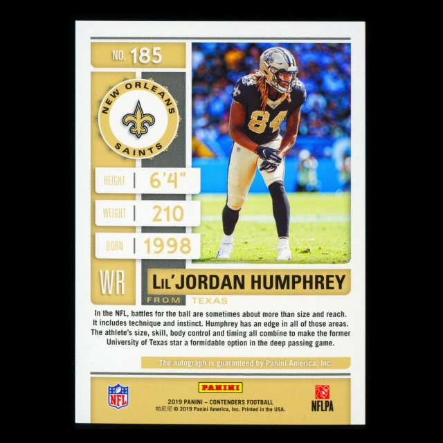 Lil'Jordan Humphrey RC 2019 Contender Rookie Ticket Auto Saints