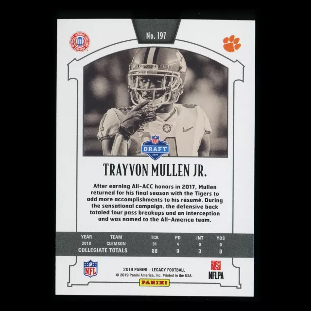 Trayvon Mullen Jr. RC 2019 Legacy Rookie Tigers/Raiders