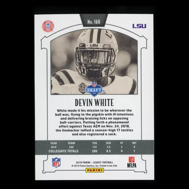 Devin White RC 2019 Legacy Rookie Tigers/Buccaneers