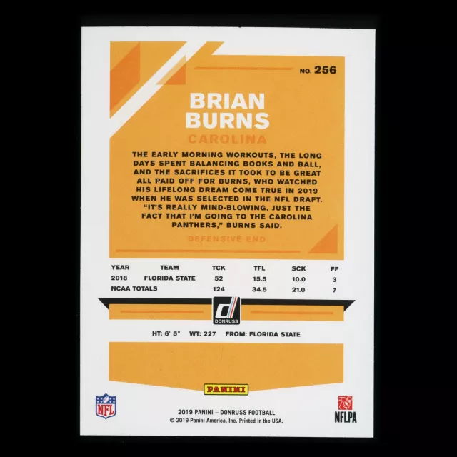 Brian Burns RC 2019 Donruss Rookie Panthers