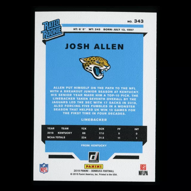 Josh Allen RR 2019 Donruss Rated Rookie Canvas Jaguars
