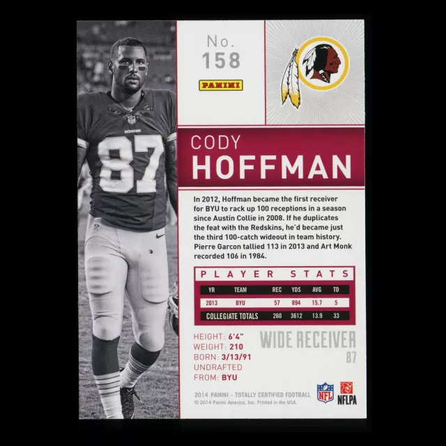 Cody Hoffman 2014 Totally Certified Redskins