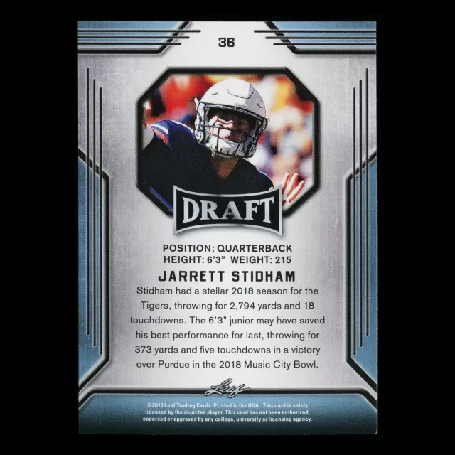 Jarrett Stidham 2019 Leaf Draft Gold Tigers/Patriots