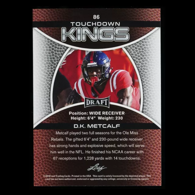 D.K. Metcalf 2019 Leaf Draft Gold Touchdown Kings Sun Rebels/Seahawks