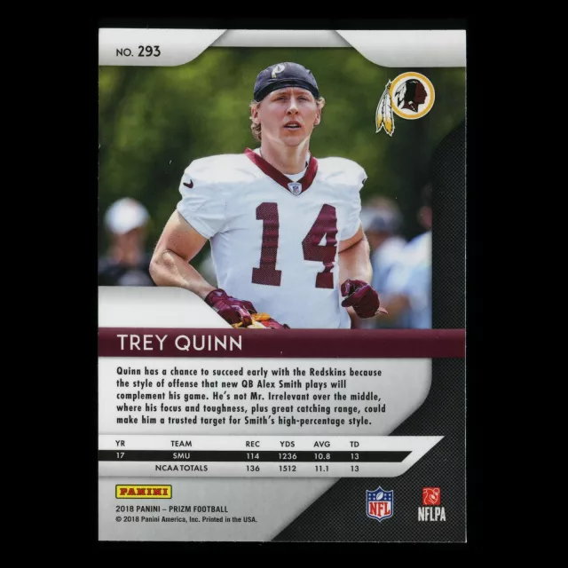 Trey Quinn RC 2018 Prizm Rookie Redskins