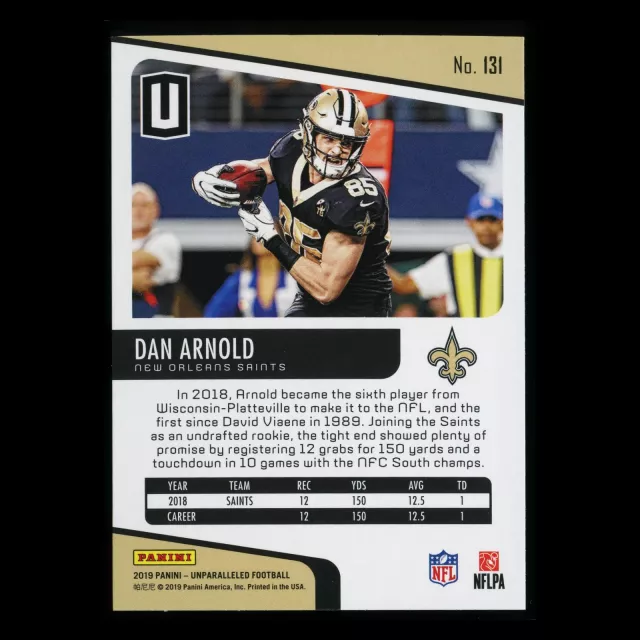 Dan Arnold RC 2019 Unparalleled Rookie Saints