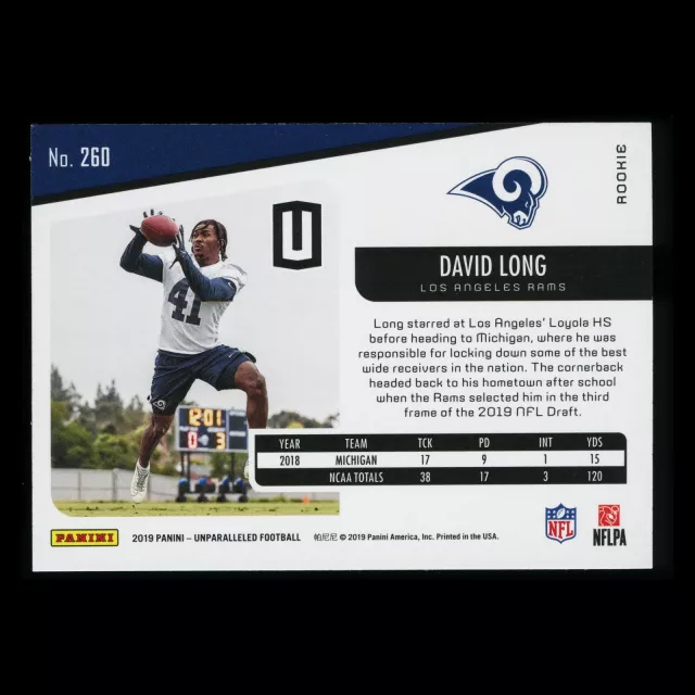 David Long RC 2019 Unparalleled Rookie Rams