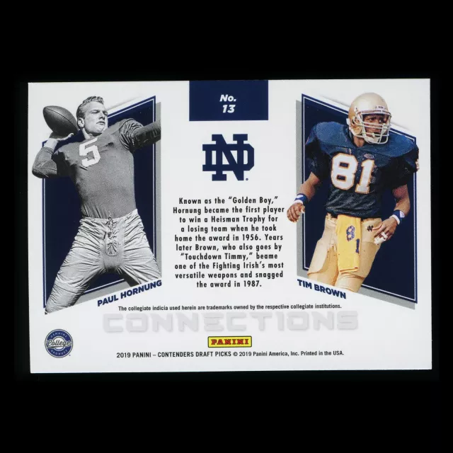 Paul Hornung | Tim Brown 2019 Contender Draft Picks Connections Fighting Irish