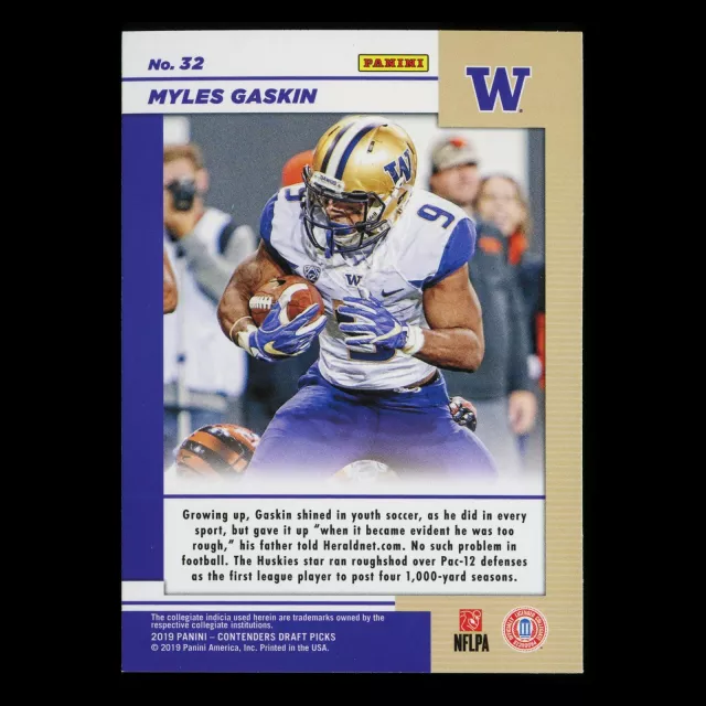 Myles Gaskin 2019 Contender Draft Picks Game Day Ticket Huskies