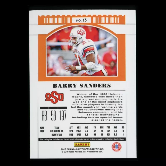 Barry Sanders 2019 Contender Draft Picks Season Ticket Cowboys