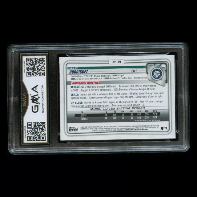 Julio Rodriguez 2020 Bowman Prospect Mariners Gem MT 10